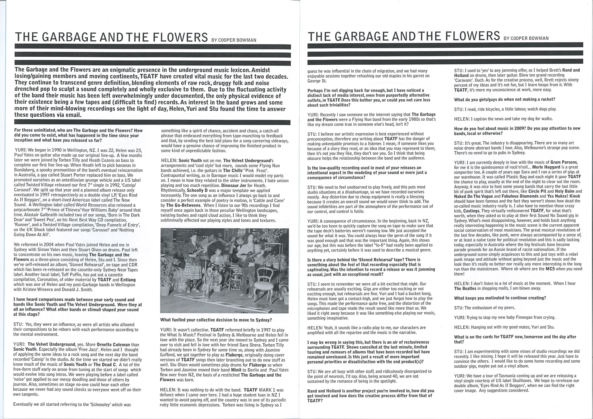 INTERVIEWS 1997 Wim Time Interview featuring Paul 2009 Stained Sheets Cooper Bowman Interview Highly Contagious Highly Contagious vol2 The Garbage and the Flowers interview Yuri Jon Dale Interview for Fire Eraib Booklet John Dale Interview Correspondence [sic]korski German Mag [sic]korski Torben Tilly Interview Torben Tilly Interview Everett True, Collapse Board Interview Collapse Board Interview Selectorama Interview Selectorama Interview The Moderate Interview The Moderate Interview
